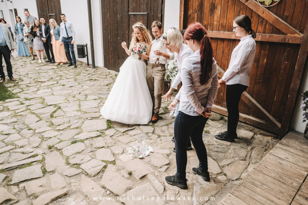 Barča a Lukáš. Krásní, mladí a milující se lidé, kteří do toho „praštili“ asi po ročním vztahu a to pěkně zvostra rovnou na 1. Máj. Osobně mám takové svatby nejraději, protože díky podobné osobní zkušenosti vyloženě miluju příběhy lidí, kteří od prvních společných chvil vědí, že před sebou mají toho pravého člověka, bez kterého už nechtějí žít, a že už vůbec není nač čekat. Na takovém páru je nádherně vidět (později i na fotkách), jak jsou pořád zamilovaní, a jak je ta láska žene neskutečně vpřed. Ne že by to na uzrálejších párech nemohlo být také vidět, ale zde je to většinou sázka na jistotu. Barča a Lukáš nebyli jen zamilovaní, krásní a moc hezky vystajlovaní, ale měli i parádní výzdobu, místa, styl svatby a pár opravdu originálních nápadů, kde za všechny uvedu asi chvíli, kdy namísto holubic, vypouštěli svatební slepice (tzv. Hod’s’kuru). Bylo to prostě krásné, takže mě ke konci nemohlo překvapit ani to, že přišel „jednorožec“ a sežral nevěstě kytku. Díky a hodně štěstí!