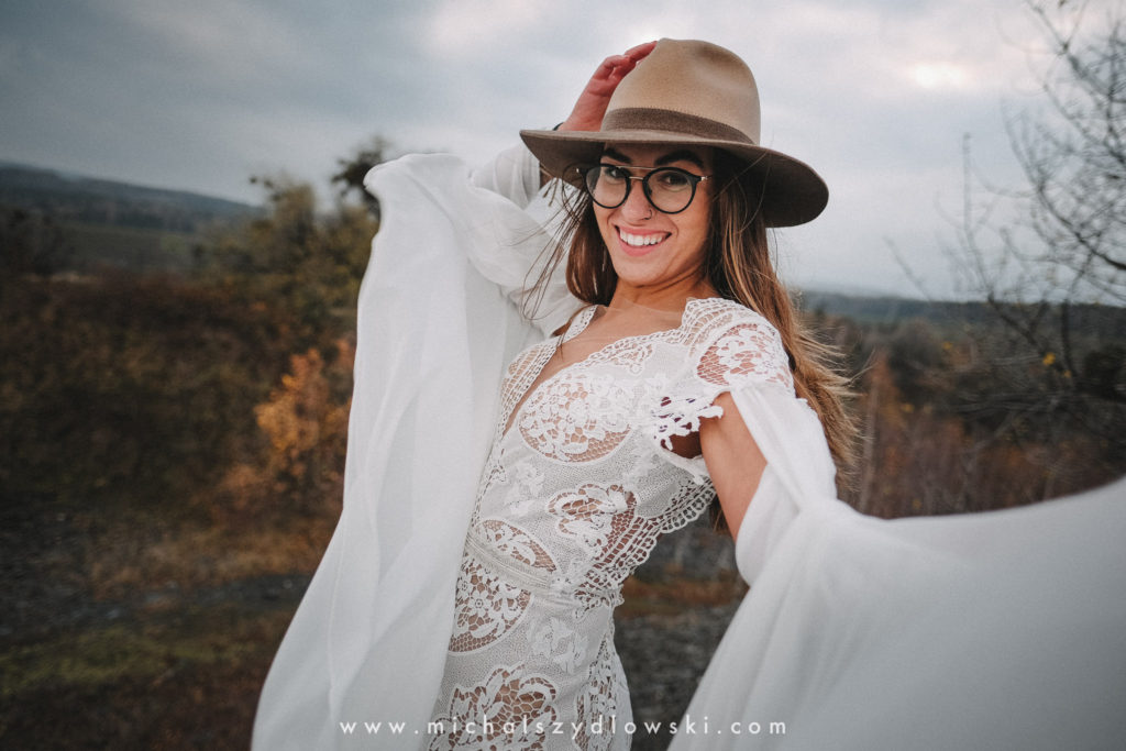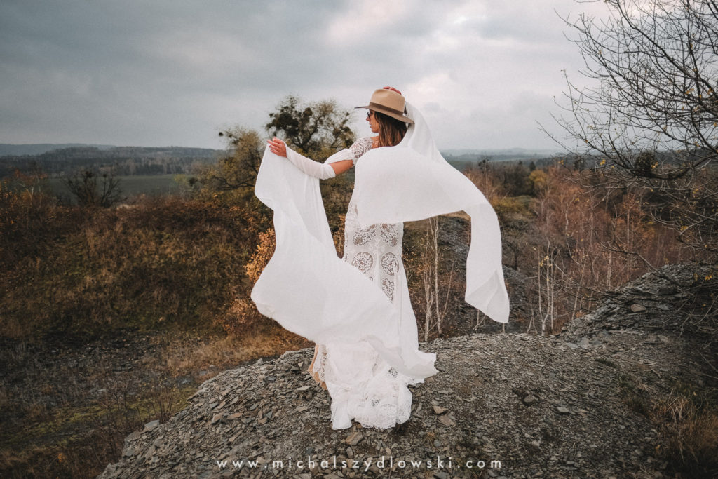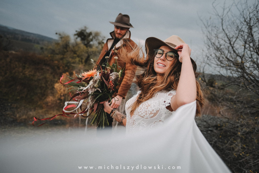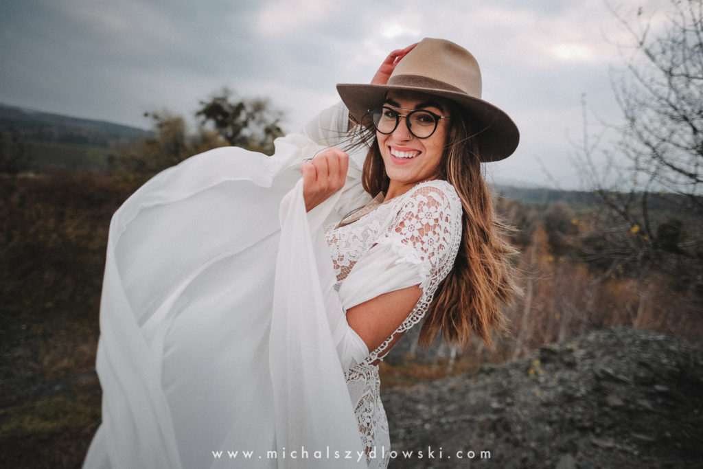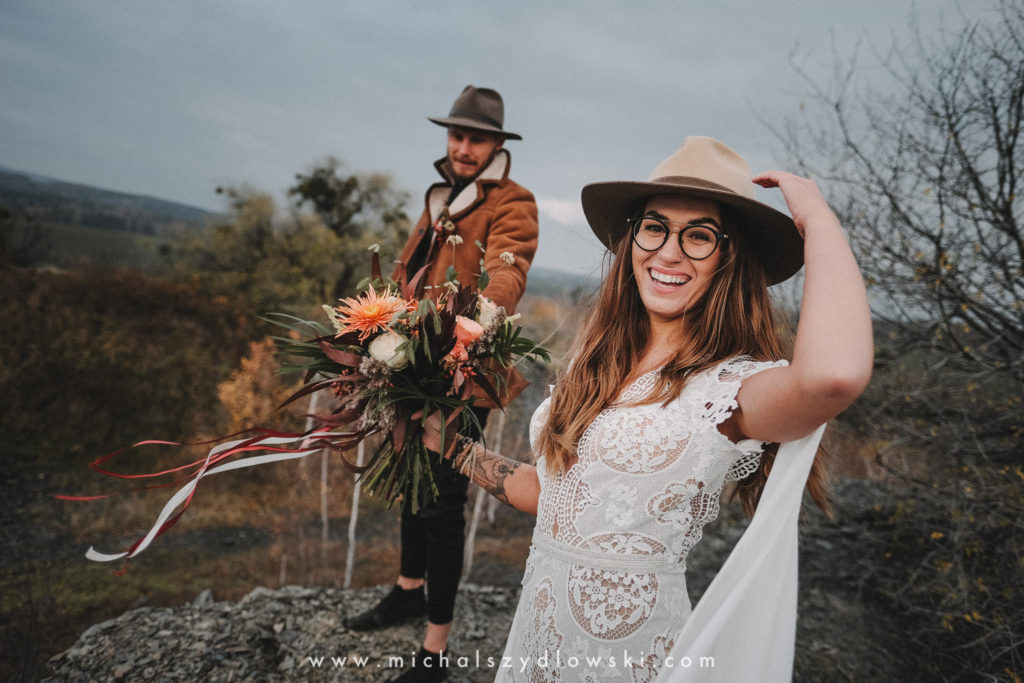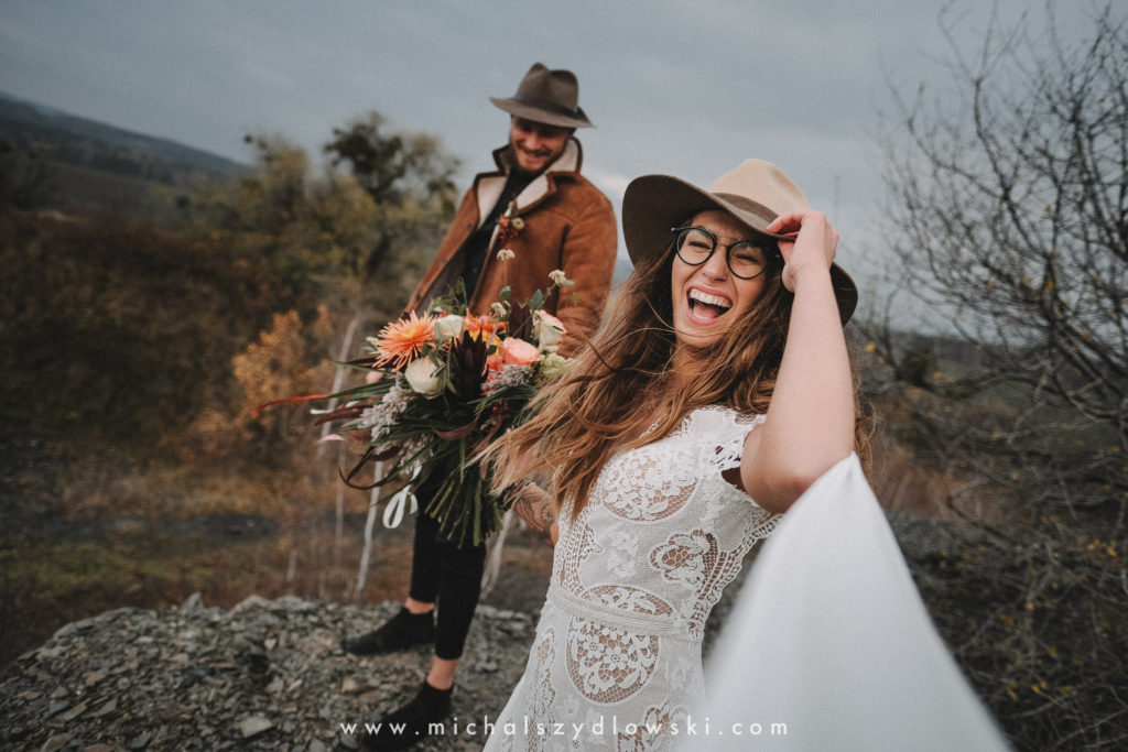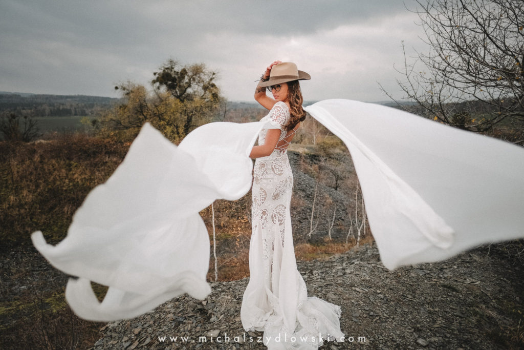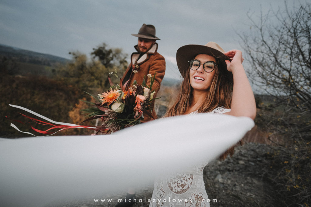 Klárka a Vašek. Dva výtečníci, kteří krom toho, že se léta milují a vydrželi spolu už kdeco, milují i krásné a originální věci. Slovo dalo slovo a během týdne jsme jim na základě této domluvy vymysleli to nejdůležitější, tedy jejich svatební look. Vybrali jsme dodavatele a měli tak i špičkové šaty a překrásné kytky. V náš den jsme vyrazili na finálně zvolené místo, kde předpověď hlásila déšť přesně od 2 do 4, kdy ve 4 měla být už tma. Dorazili jsme tam asi o půl třetí. Musím říct, že místo jsem sice docela znal, ale přes tři roky jsem tam nebyl, takže mě dost překvapilo, že ten největší kopec, na který jsme tam spoléhali jako na nosník spousty fotek, kdosi srovnal se zemí. Ale to je život. Tak to chodí. Předpověď nelhala. Začalo pršet. A protože neskutečně fučelo, tak nám pršelo rovnou do objektivů asi tak polovinu z cca hodinového focení. No a? I to se někdy děje. Dobrá nálada je vždy základ a ta nechyběla, takže vlastně nebyl žádný problém, jen samé drobné komplikace. Když se chce…
