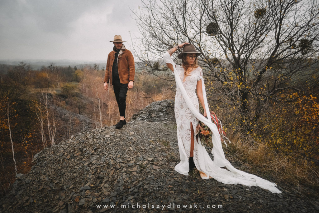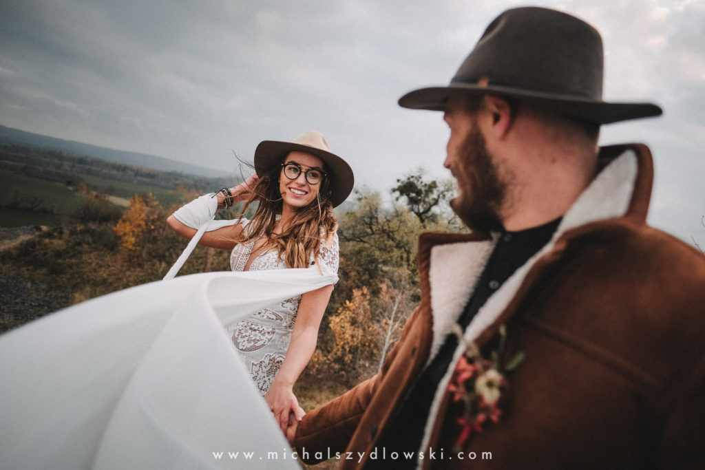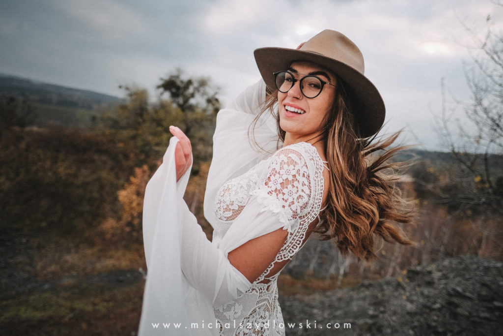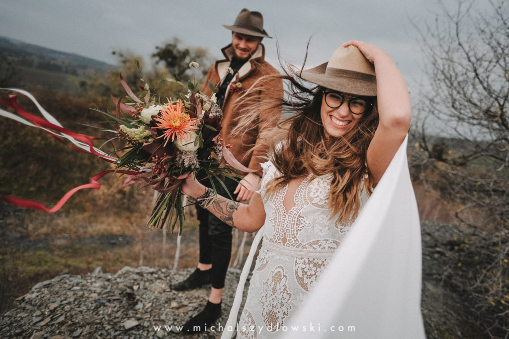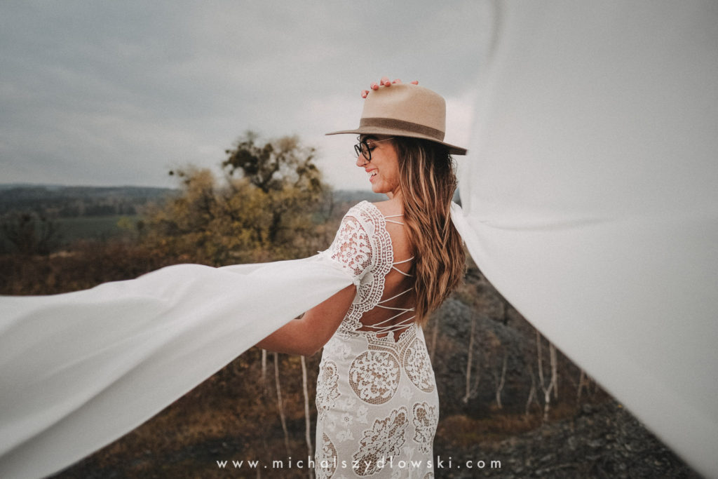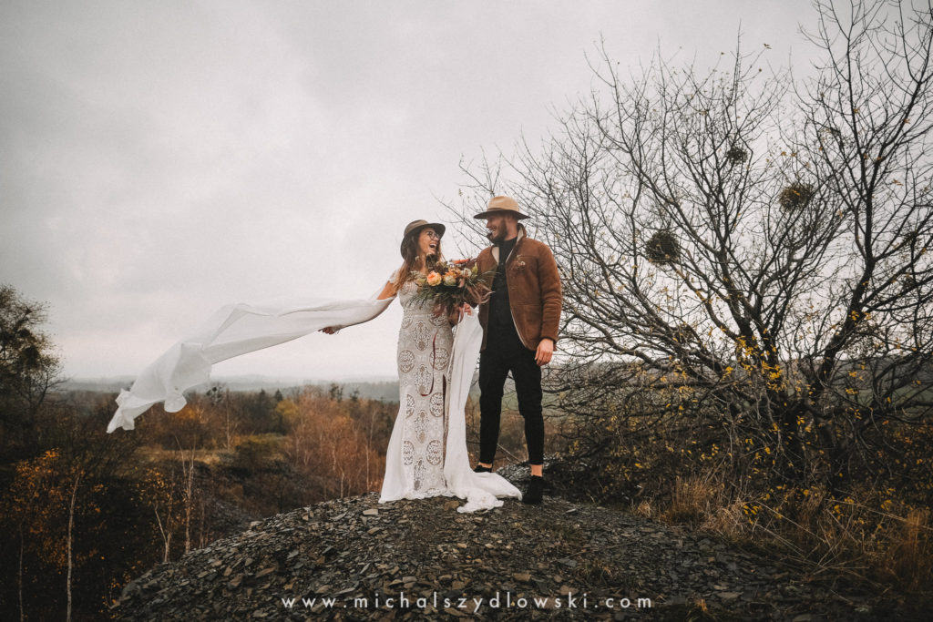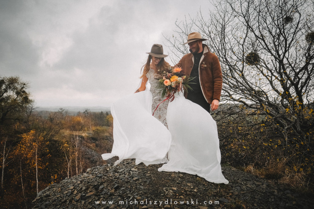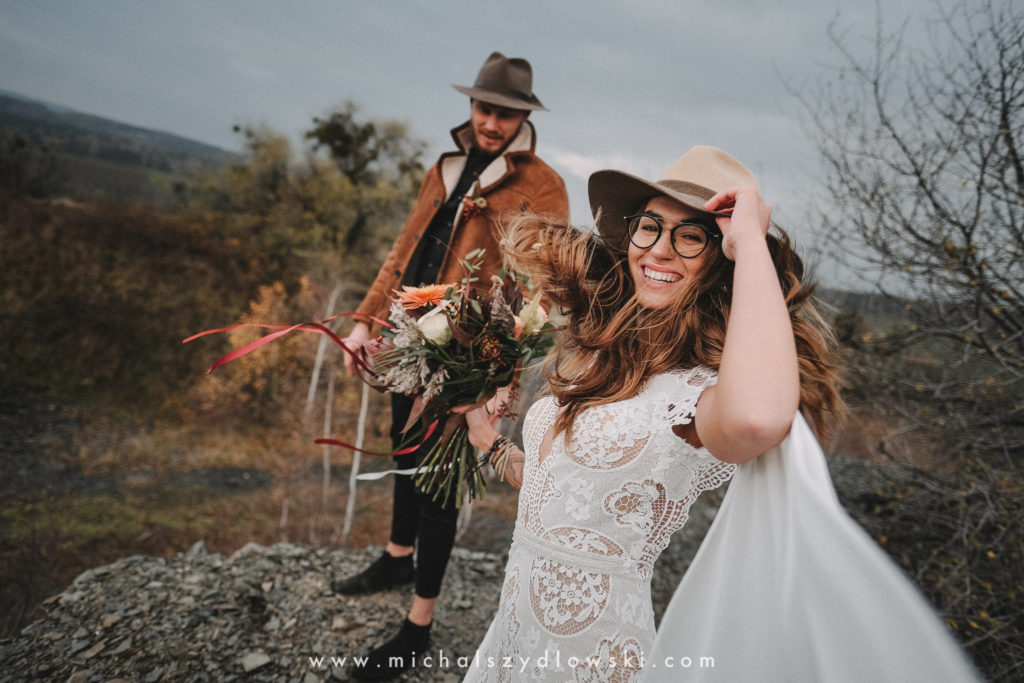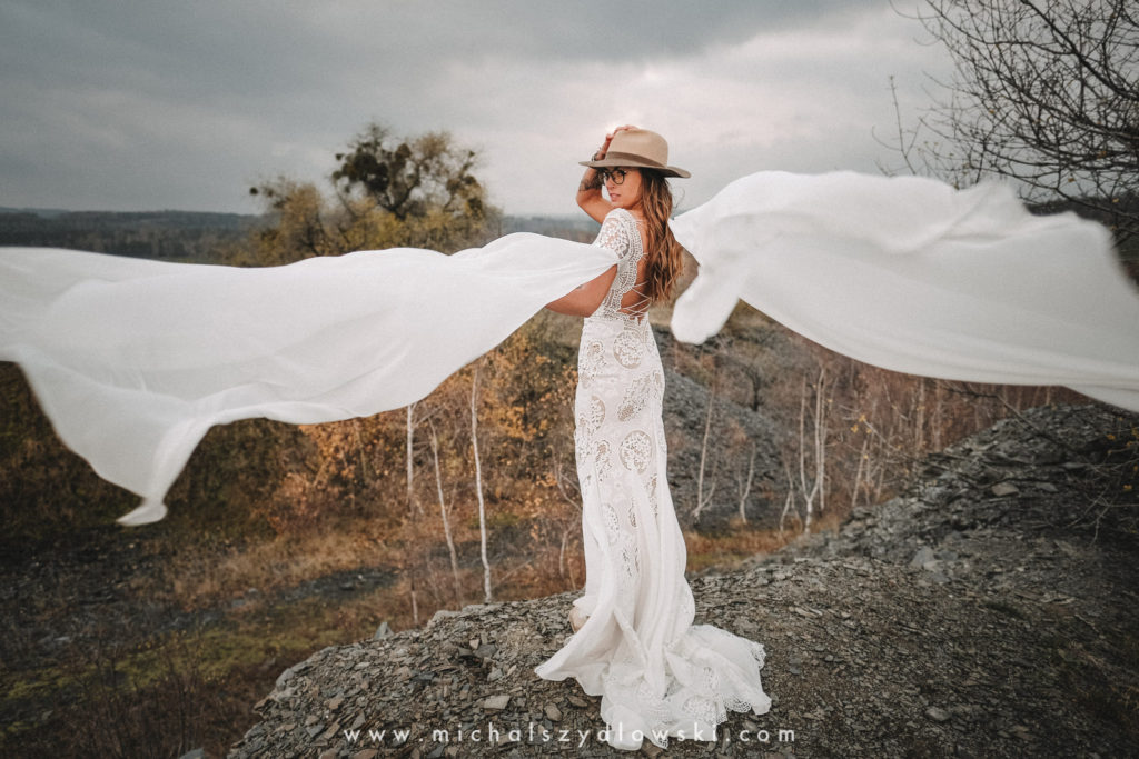 Klárka a Vašek. Dva výtečníci, kteří krom toho, že se léta milují a vydrželi spolu už kdeco, milují i krásné a originální věci. Slovo dalo slovo a během týdne jsme jim na základě této domluvy vymysleli to nejdůležitější, tedy jejich svatební look. Vybrali jsme dodavatele a měli tak i špičkové šaty a překrásné kytky. V náš den jsme vyrazili na finálně zvolené místo, kde předpověď hlásila déšť přesně od 2 do 4, kdy ve 4 měla být už tma. Dorazili jsme tam asi o půl třetí. Musím říct, že místo jsem sice docela znal, ale přes tři roky jsem tam nebyl, takže mě dost překvapilo, že ten největší kopec, na který jsme tam spoléhali jako na nosník spousty fotek, kdosi srovnal se zemí. Ale to je život. Tak to chodí. Předpověď nelhala. Začalo pršet. A protože neskutečně fučelo, tak nám pršelo rovnou do objektivů asi tak polovinu z cca hodinového focení. No a? I to se někdy děje. Dobrá nálada je vždy základ a ta nechyběla, takže vlastně nebyl žádný problém, jen samé drobné komplikace. Když se chce…