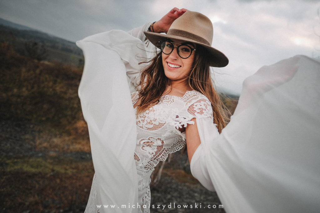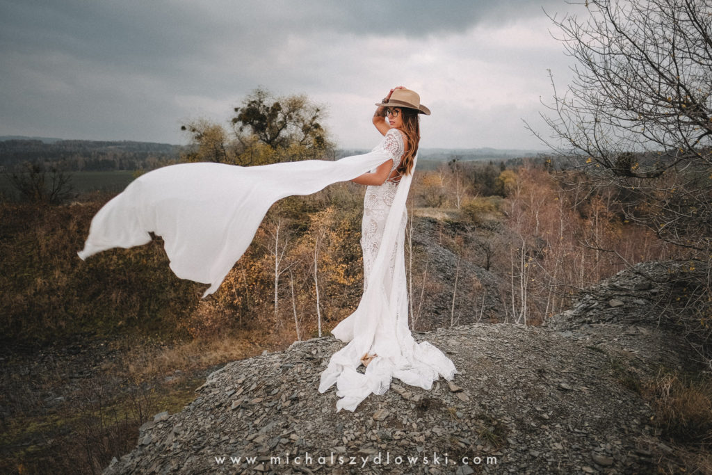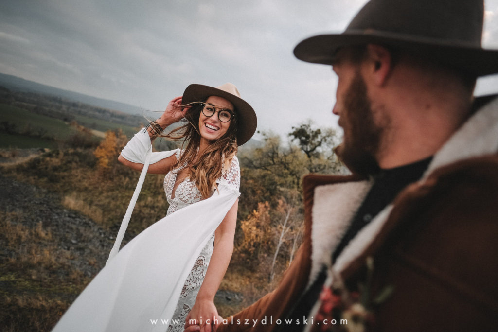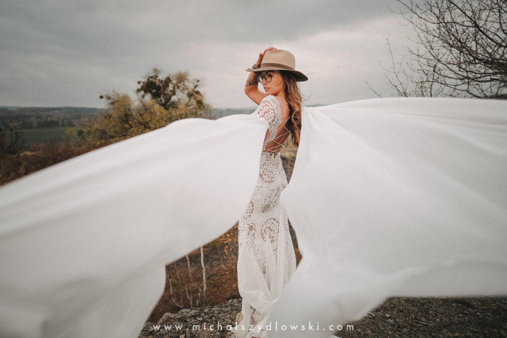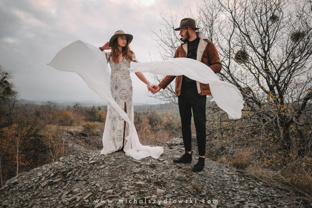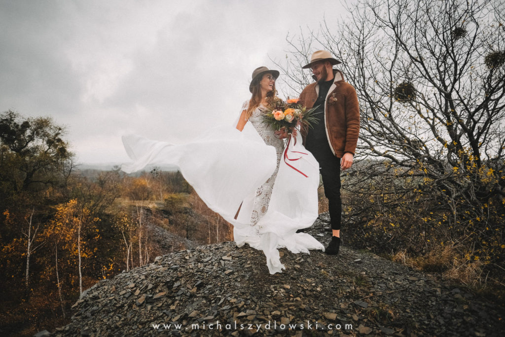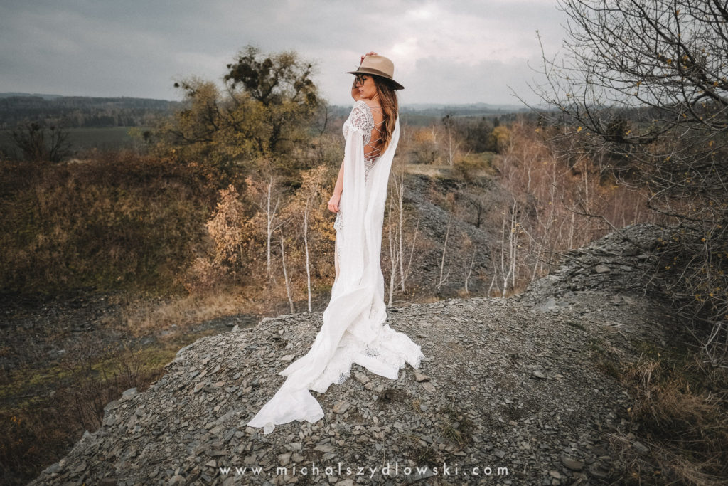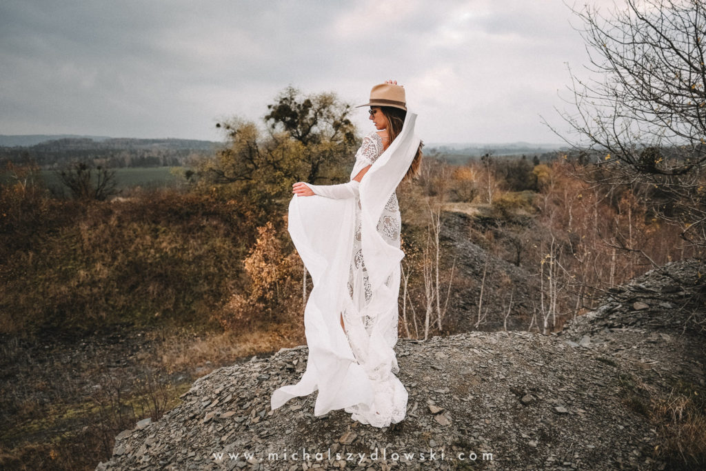 Klárka a Vašek. Dva výtečníci, kteří krom toho, že se léta milují a vydrželi spolu už kdeco, milují i krásné a originální věci. Slovo dalo slovo a během týdne jsme jim na základě této domluvy vymysleli to nejdůležitější, tedy jejich svatební look. Vybrali jsme dodavatele a měli tak i špičkové šaty a překrásné kytky. V náš den jsme vyrazili na finálně zvolené místo, kde předpověď hlásila déšť přesně od 2 do 4, kdy ve 4 měla být už tma. Dorazili jsme tam asi o půl třetí. Musím říct, že místo jsem sice docela znal, ale přes tři roky jsem tam nebyl, takže mě dost překvapilo, že ten největší kopec, na který jsme tam spoléhali jako na nosník spousty fotek, kdosi srovnal se zemí. Ale to je život. Tak to chodí. Předpověď nelhala. Začalo pršet. A protože neskutečně fučelo, tak nám pršelo rovnou do objektivů asi tak polovinu z cca hodinového focení. No a? I to se někdy děje. Dobrá nálada je vždy základ a ta nechyběla, takže vlastně nebyl žádný problém, jen samé drobné komplikace. Když se chce…