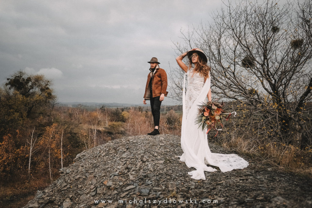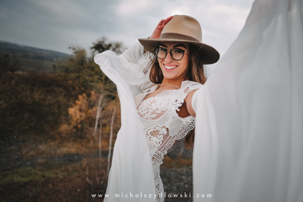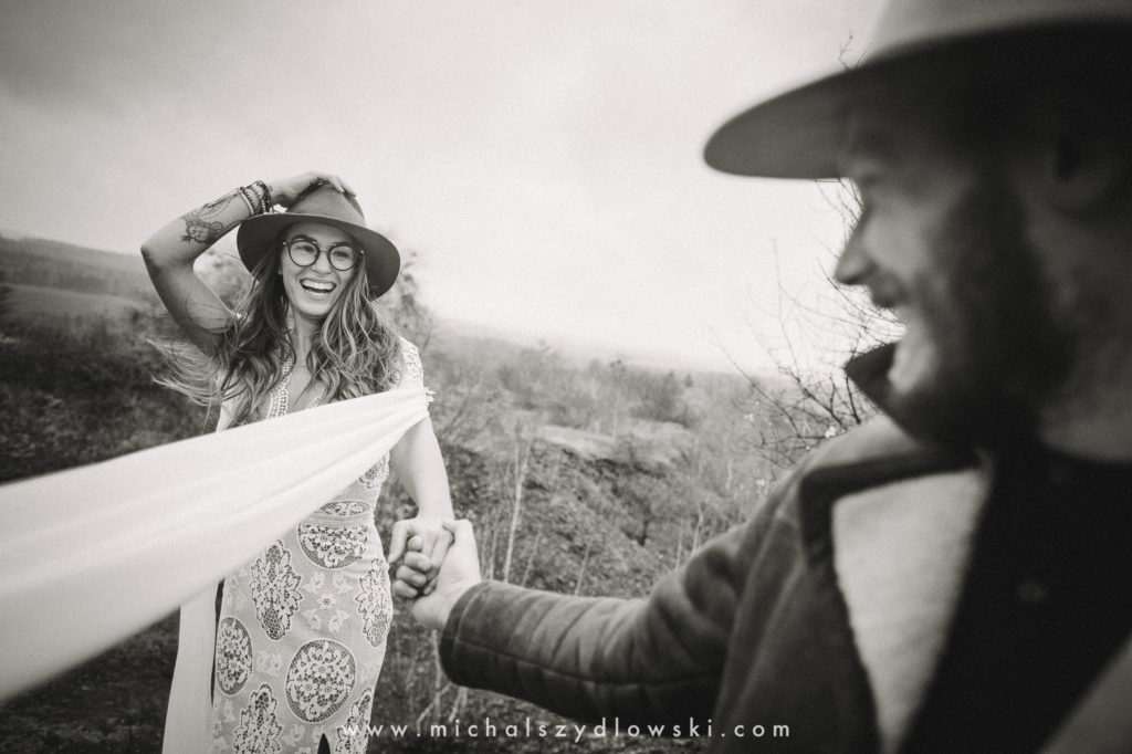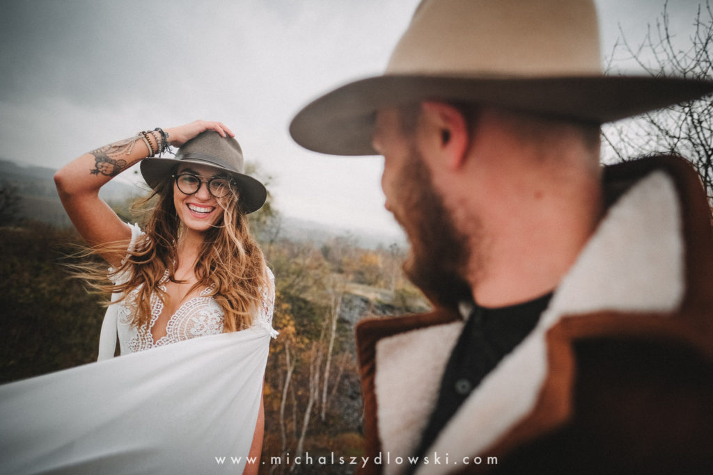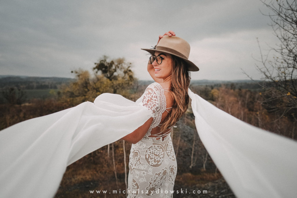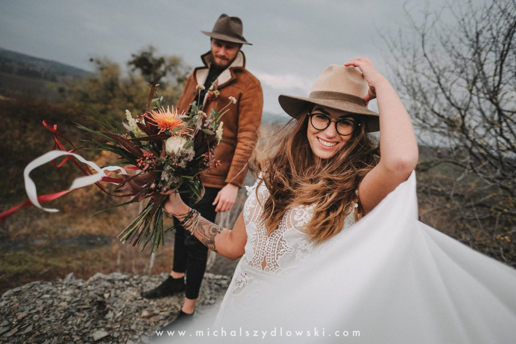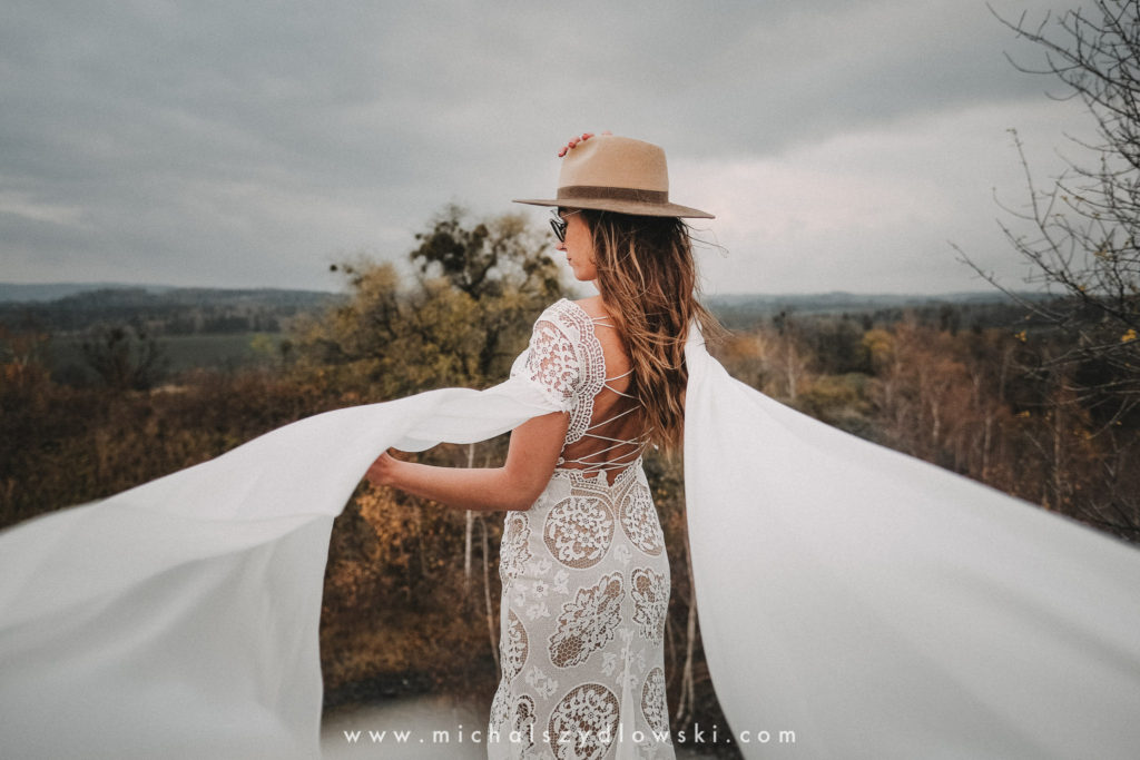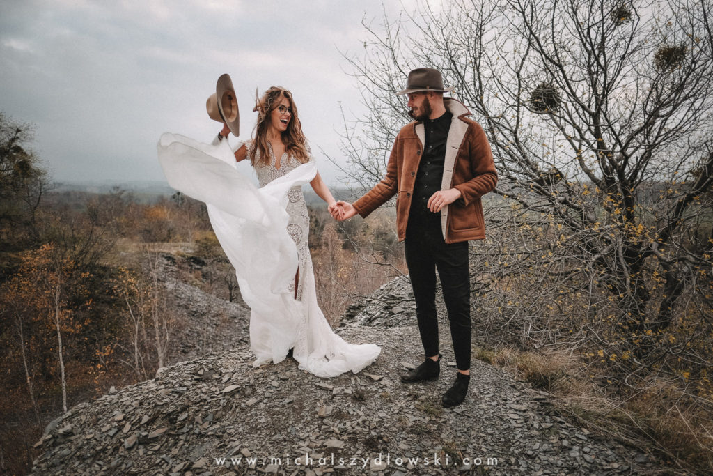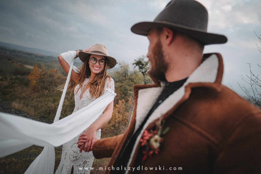 Klárka a Vašek. Dva výtečníci, kteří krom toho, že se léta milují a vydrželi spolu už kdeco, milují i krásné a originální věci. Slovo dalo slovo a během týdne jsme jim na základě této domluvy vymysleli to nejdůležitější, tedy jejich svatební look. Vybrali jsme dodavatele a měli tak i špičkové šaty a překrásné kytky. V náš den jsme vyrazili na finálně zvolené místo, kde předpověď hlásila déšť přesně od 2 do 4, kdy ve 4 měla být už tma. Dorazili jsme tam asi o půl třetí. Musím říct, že místo jsem sice docela znal, ale přes tři roky jsem tam nebyl, takže mě dost překvapilo, že ten největší kopec, na který jsme tam spoléhali jako na nosník spousty fotek, kdosi srovnal se zemí. Ale to je život. Tak to chodí. Předpověď nelhala. Začalo pršet. A protože neskutečně fučelo, tak nám pršelo rovnou do objektivů asi tak polovinu z cca hodinového focení. No a? I to se někdy děje. Dobrá nálada je vždy základ a ta nechyběla, takže vlastně nebyl žádný problém, jen samé drobné komplikace. Když se chce…