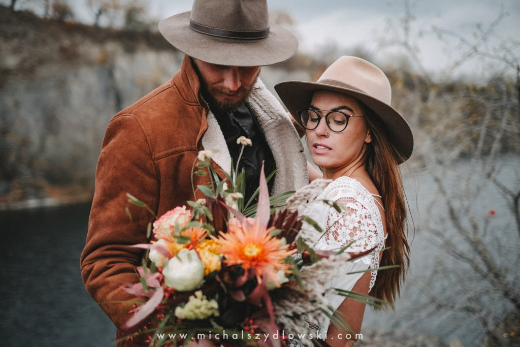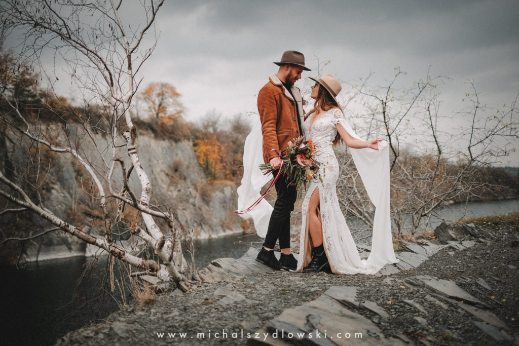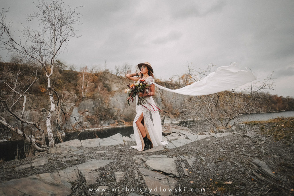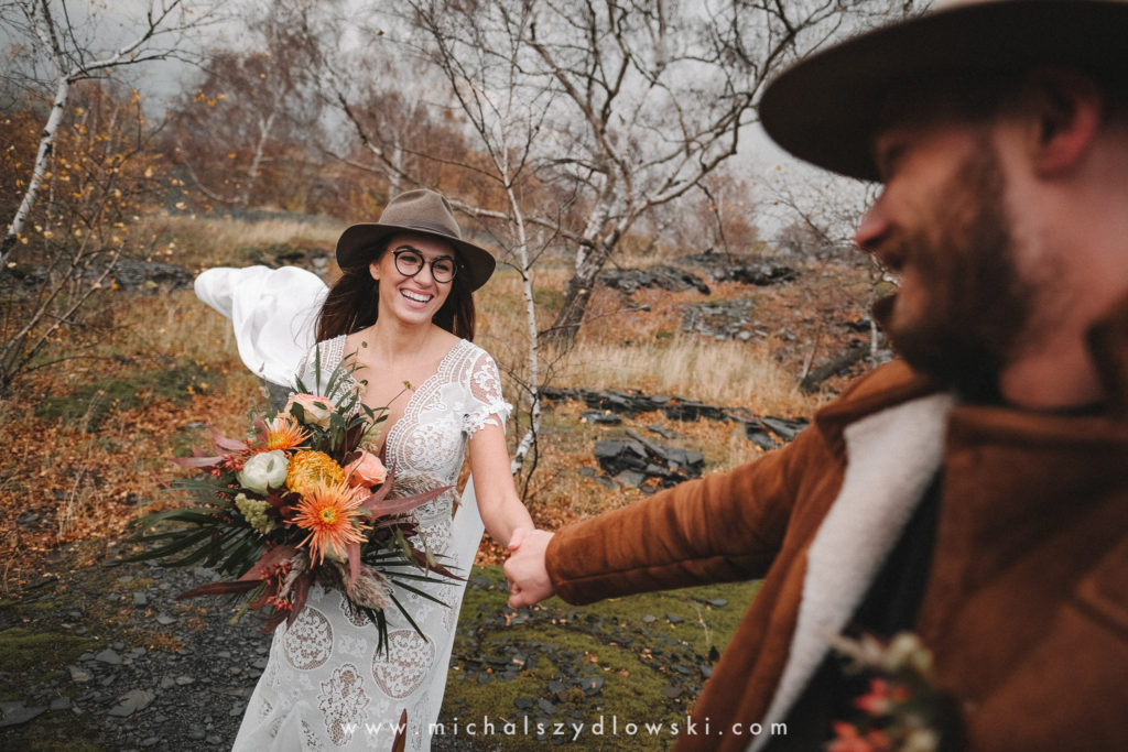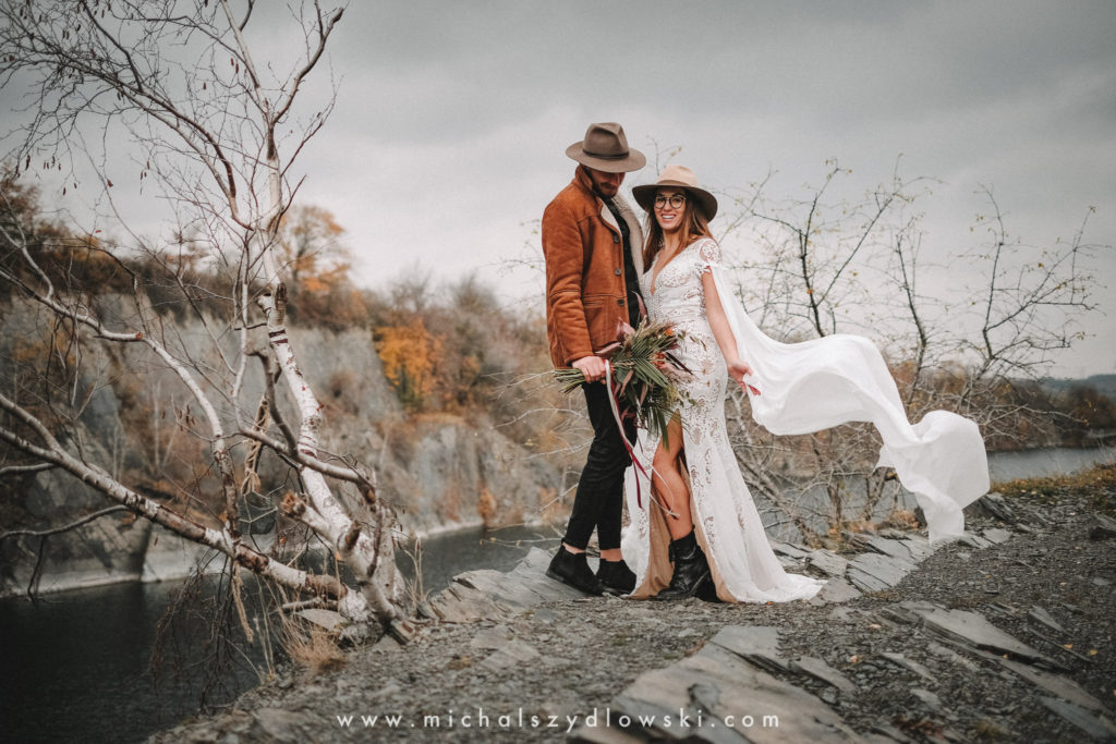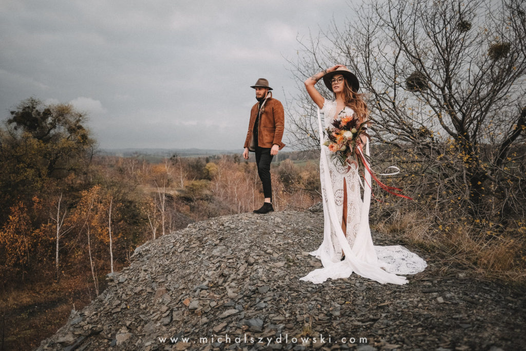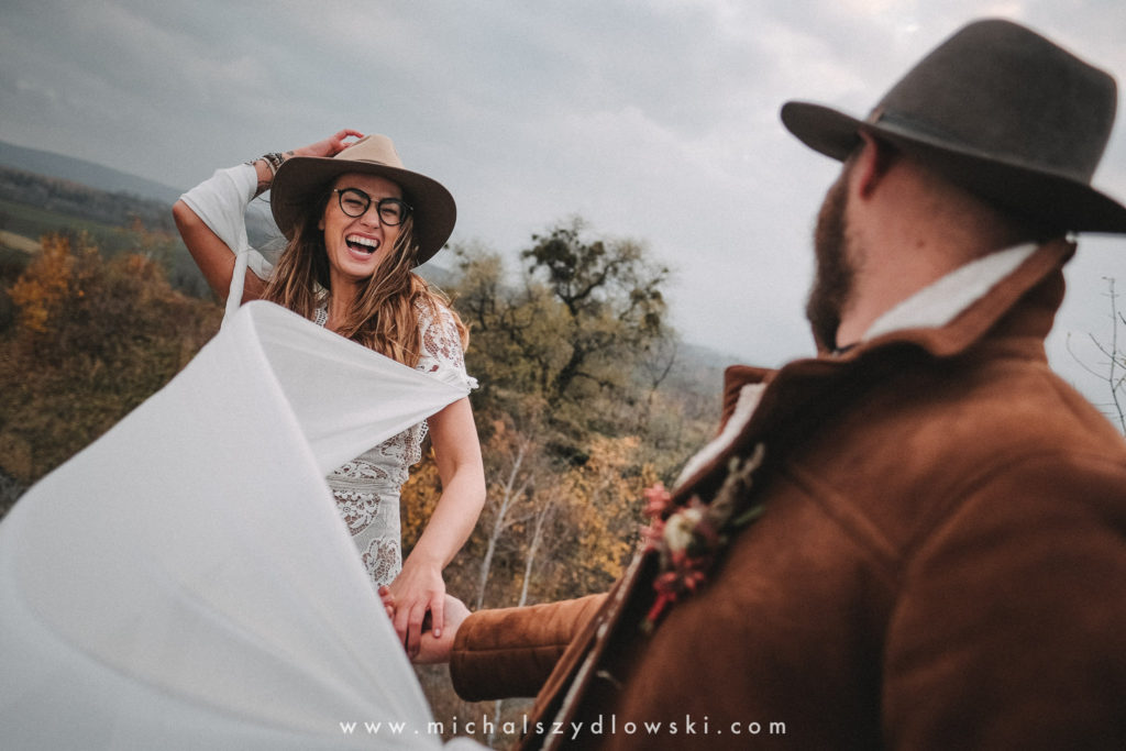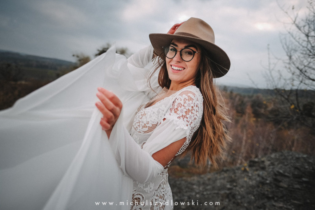 Klárka a Vašek. Dva výtečníci, kteří krom toho, že se léta milují a vydrželi spolu už kdeco, milují i krásné a originální věci. Slovo dalo slovo a během týdne jsme jim na základě této domluvy vymysleli to nejdůležitější, tedy jejich svatební look. Vybrali jsme dodavatele a měli tak i špičkové šaty a překrásné kytky. V náš den jsme vyrazili na finálně zvolené místo, kde předpověď hlásila déšť přesně od 2 do 4, kdy ve 4 měla být už tma. Dorazili jsme tam asi o půl třetí. Musím říct, že místo jsem sice docela znal, ale přes tři roky jsem tam nebyl, takže mě dost překvapilo, že ten největší kopec, na který jsme tam spoléhali jako na nosník spousty fotek, kdosi srovnal se zemí. Ale to je život. Tak to chodí. Předpověď nelhala. Začalo pršet. A protože neskutečně fučelo, tak nám pršelo rovnou do objektivů asi tak polovinu z cca hodinového focení. No a? I to se někdy děje. Dobrá nálada je vždy základ a ta nechyběla, takže vlastně nebyl žádný problém, jen samé drobné komplikace. Když se chce…