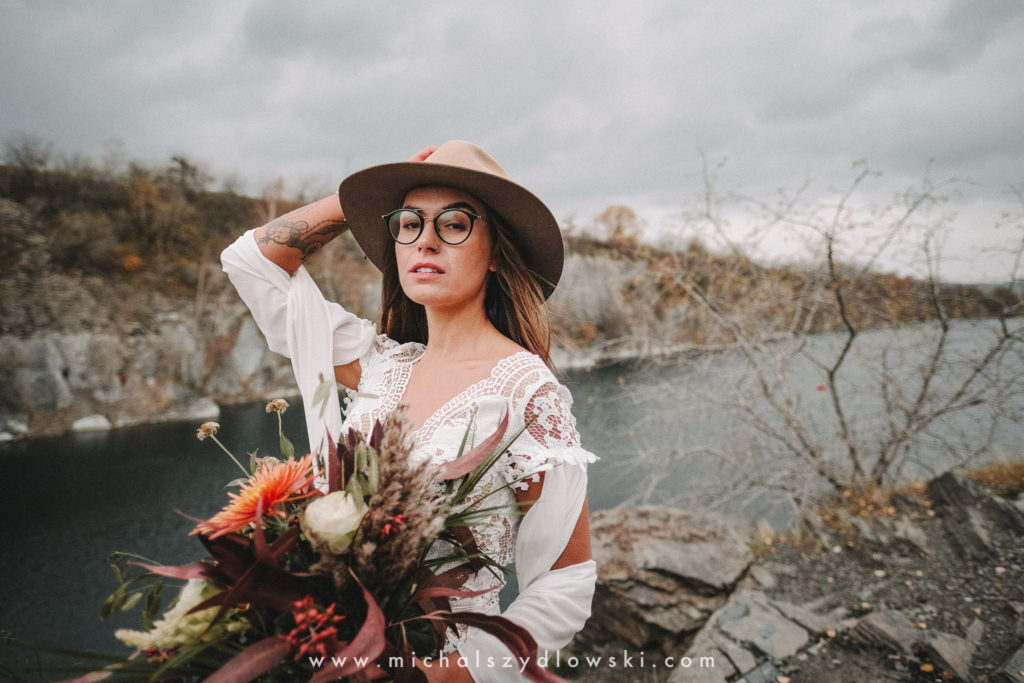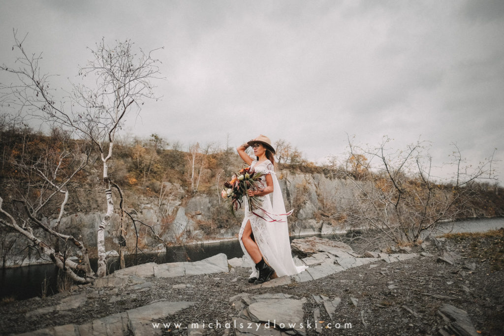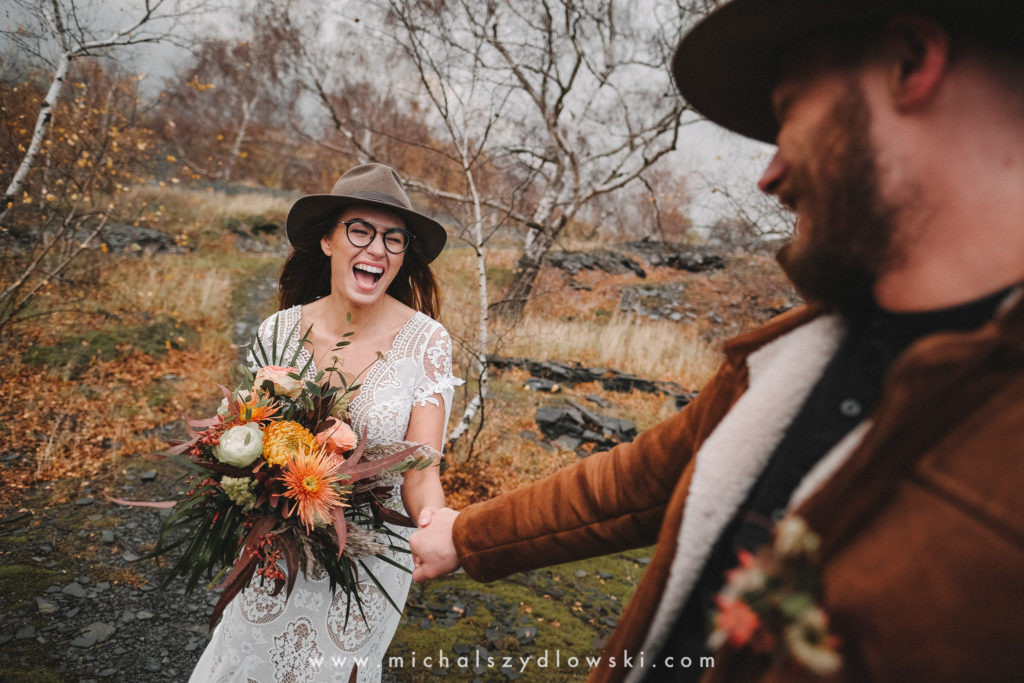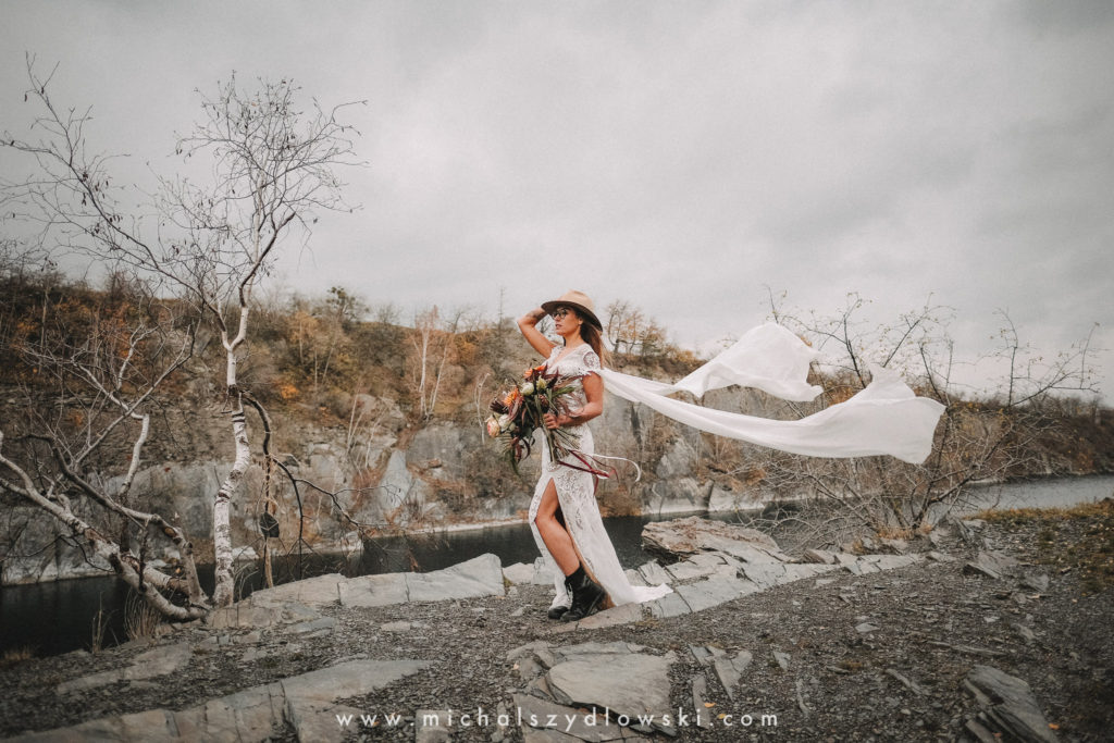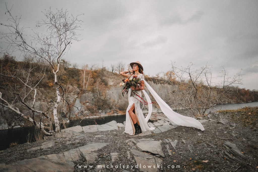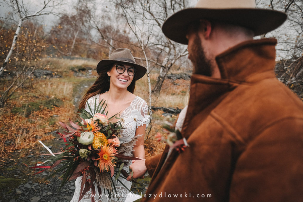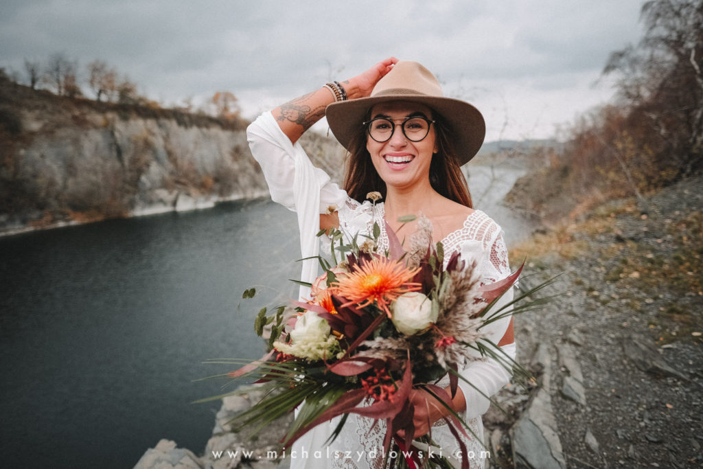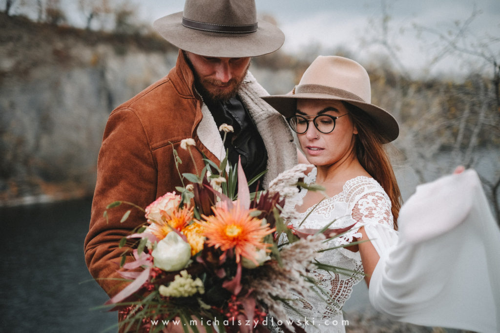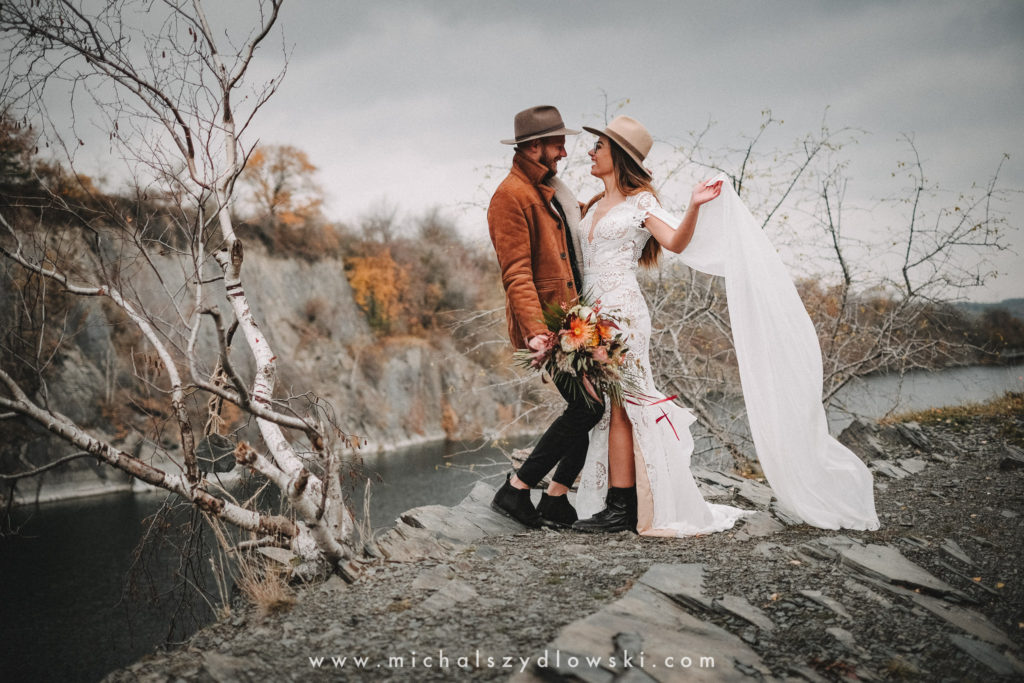 Klárka a Vašek. Dva výtečníci, kteří krom toho, že se léta milují a vydrželi spolu už kdeco, milují i krásné a originální věci. Slovo dalo slovo a během týdne jsme jim na základě této domluvy vymysleli to nejdůležitější, tedy jejich svatební look. Vybrali jsme dodavatele a měli tak i špičkové šaty a překrásné kytky. V náš den jsme vyrazili na finálně zvolené místo, kde předpověď hlásila déšť přesně od 2 do 4, kdy ve 4 měla být už tma. Dorazili jsme tam asi o půl třetí. Musím říct, že místo jsem sice docela znal, ale přes tři roky jsem tam nebyl, takže mě dost překvapilo, že ten největší kopec, na který jsme tam spoléhali jako na nosník spousty fotek, kdosi srovnal se zemí. Ale to je život. Tak to chodí. Předpověď nelhala. Začalo pršet. A protože neskutečně fučelo, tak nám pršelo rovnou do objektivů asi tak polovinu z cca hodinového focení. No a? I to se někdy děje. Dobrá nálada je vždy základ a ta nechyběla, takže vlastně nebyl žádný problém, jen samé drobné komplikace. Když se chce…