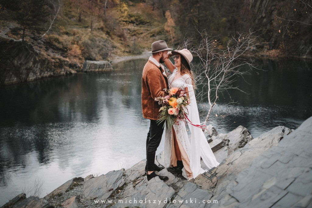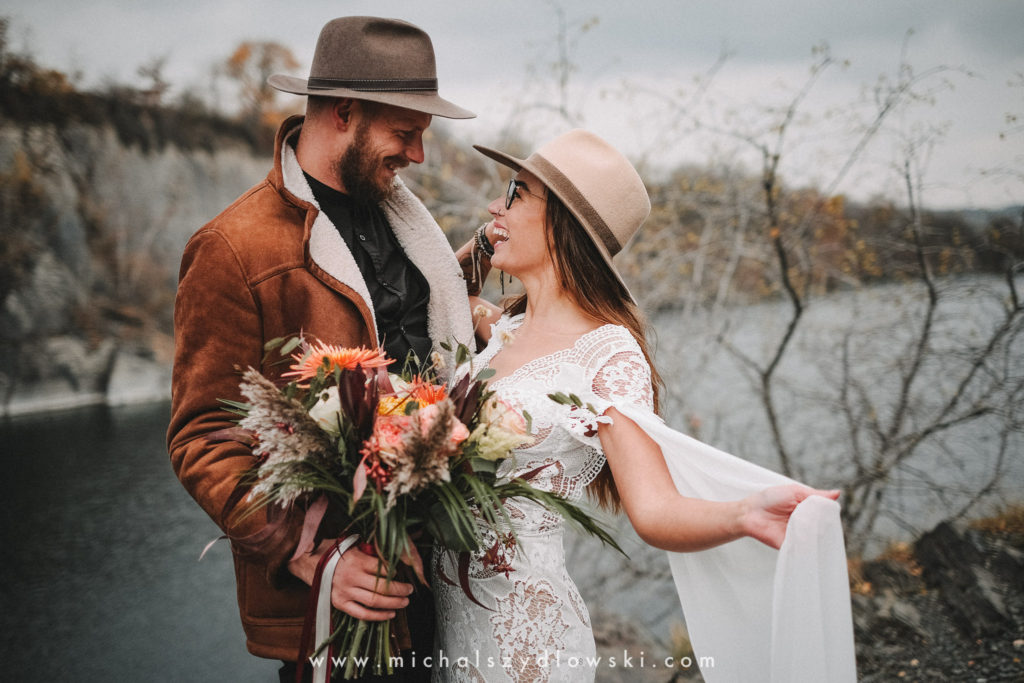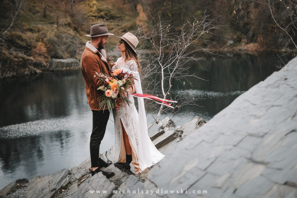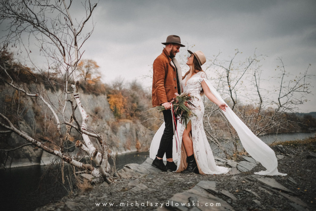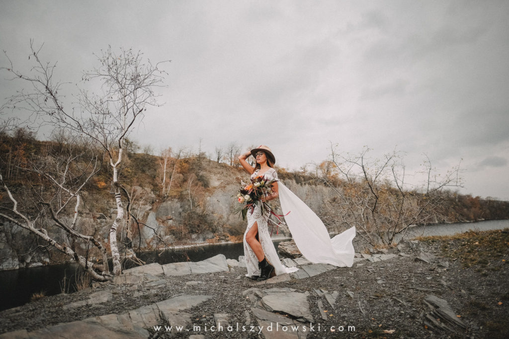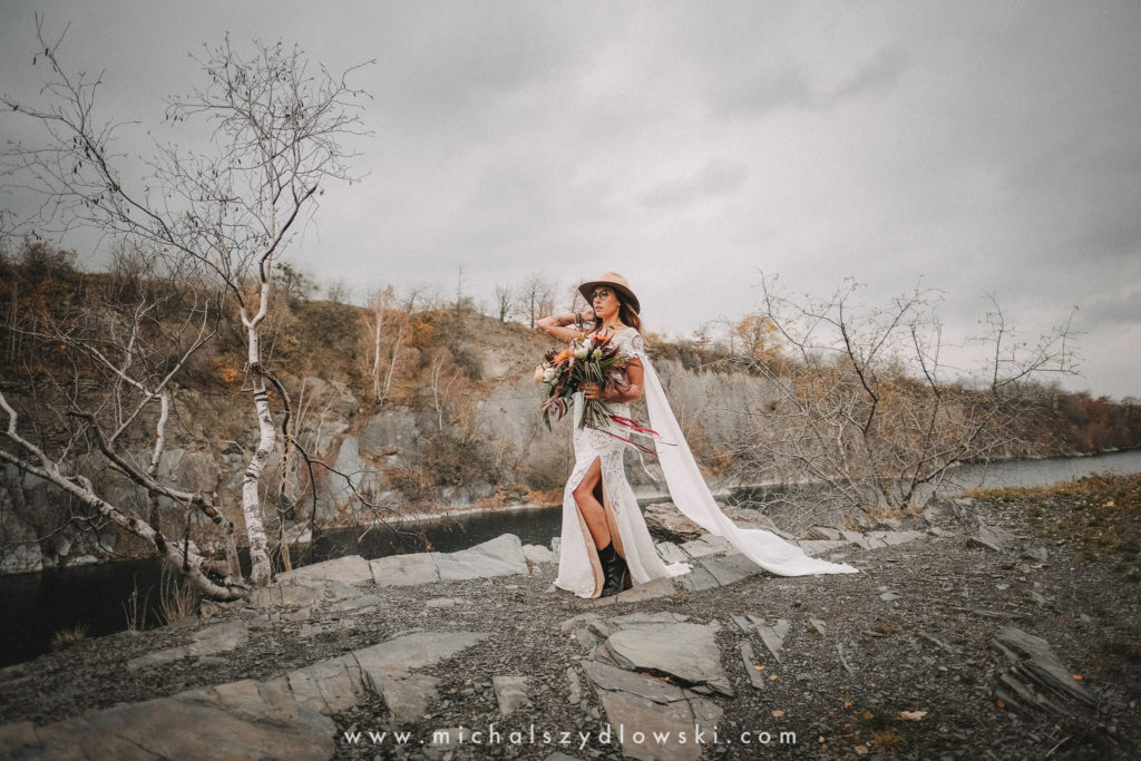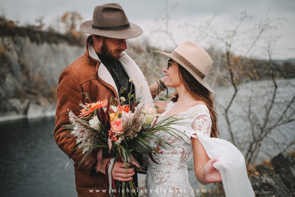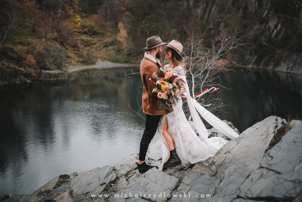 Klárka a Vašek. Dva výtečníci, kteří krom toho, že se léta milují a vydrželi spolu už kdeco, milují i krásné a originální věci. Slovo dalo slovo a během týdne jsme jim na základě této domluvy vymysleli to nejdůležitější, tedy jejich svatební look. Vybrali jsme dodavatele a měli tak i špičkové šaty a překrásné kytky. V náš den jsme vyrazili na finálně zvolené místo, kde předpověď hlásila déšť přesně od 2 do 4, kdy ve 4 měla být už tma. Dorazili jsme tam asi o půl třetí. Musím říct, že místo jsem sice docela znal, ale přes tři roky jsem tam nebyl, takže mě dost překvapilo, že ten největší kopec, na který jsme tam spoléhali jako na nosník spousty fotek, kdosi srovnal se zemí. Ale to je život. Tak to chodí. Předpověď nelhala. Začalo pršet. A protože neskutečně fučelo, tak nám pršelo rovnou do objektivů asi tak polovinu z cca hodinového focení. No a? I to se někdy děje. Dobrá nálada je vždy základ a ta nechyběla, takže vlastně nebyl žádný problém, jen samé drobné komplikace. Když se chce…