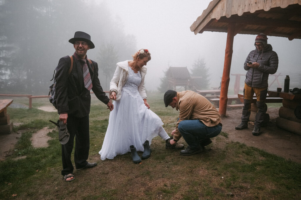Ovšem ale pokud je celá svatba takovýto horský überpunk, jsem úplně jako ryba ve vodě a náhle vidím něco doslova samosprašně překrásného. 🤩 Jasně, drtivá většina nevěst uvidí přesný opak – špínu, mokro, zimu, ultimátní diskomfort, ale o tom to asi je. O té jinakosti každému z nás různě (ne)vlastní. 🤷🏻‍♂️